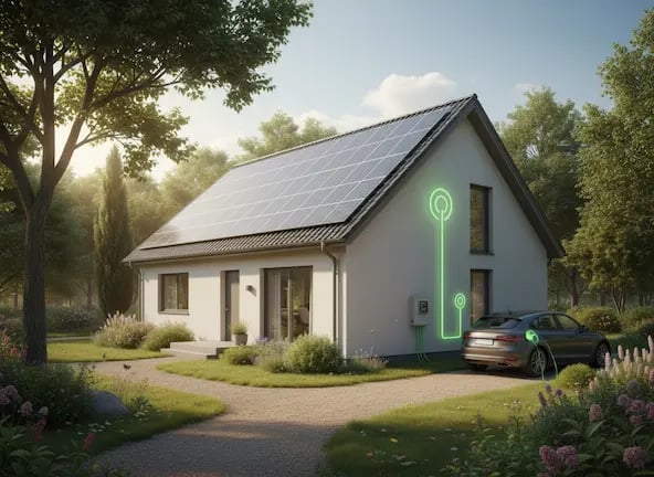 L'autoconsommation implique de générer votre propre électricité à l'aide de panneaux photovoltaïques installés sur votre toit, et de l'utiliser directement pour alimenter vos appareils (électroménagers, chauffage, éclairage, recharge de voiture électrique).